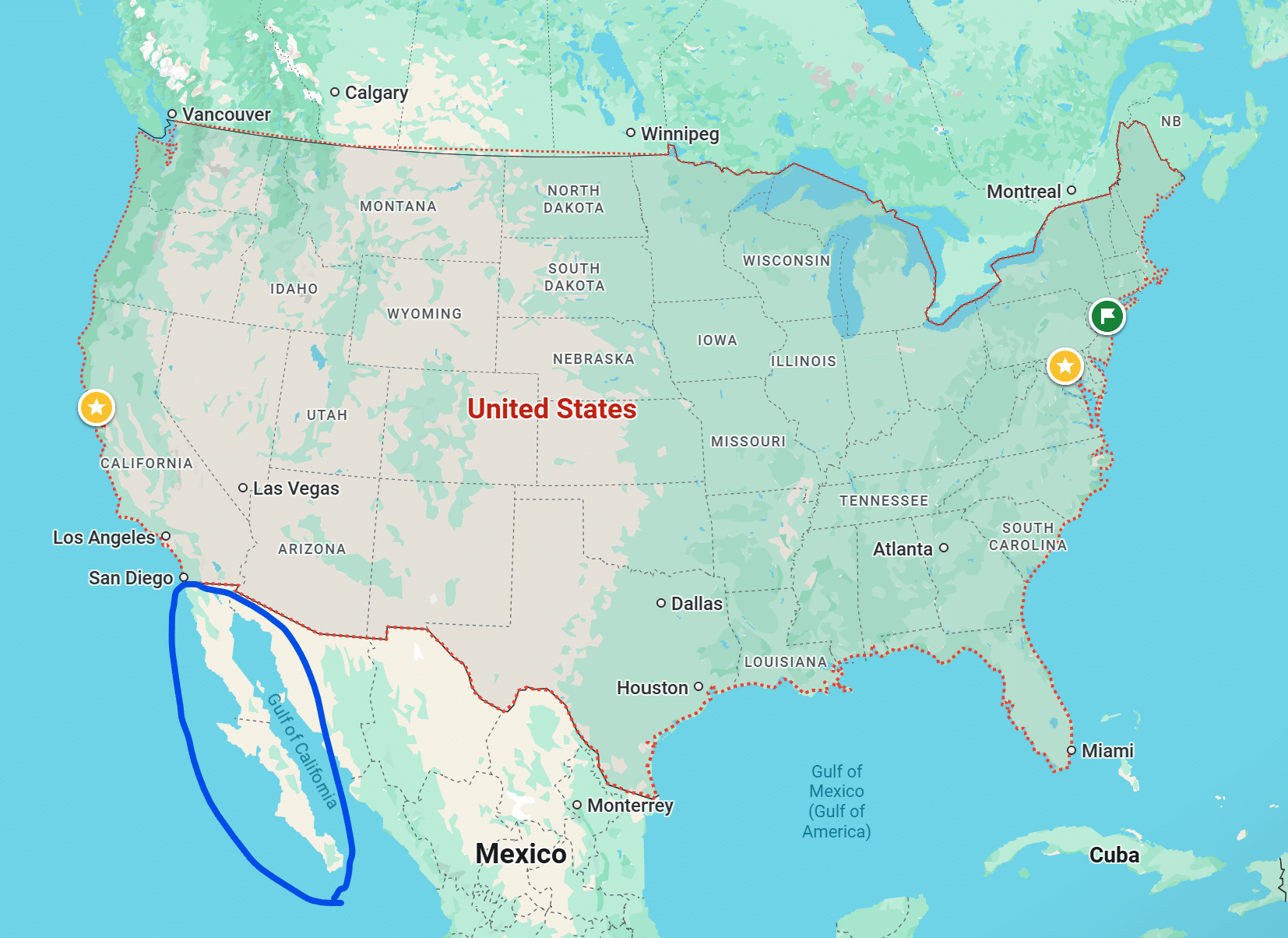 ראו מיקום חצי האי בחה קליפורניה – מסומן בעיגול כחול