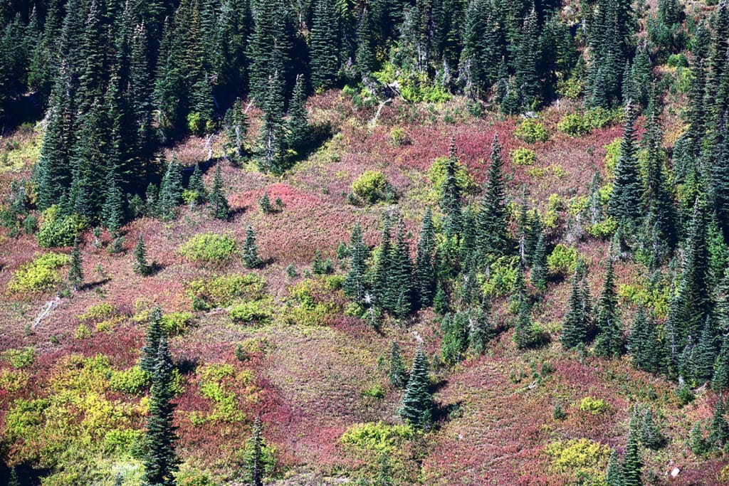 צמחיית הטונדרה האלפינית שבפסגת ההר נצבעת בחודשי הסתיו בצבעי שלכת
