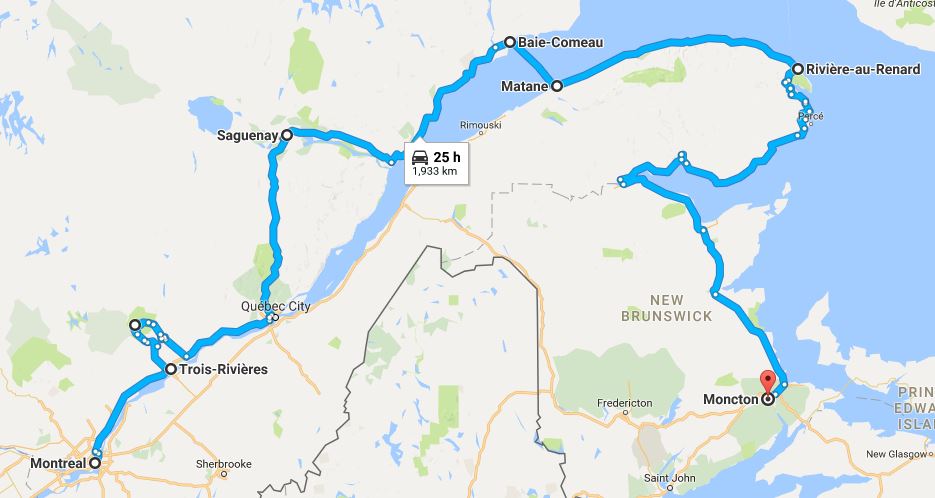 לינק למסלול ממונטריאול עד מונקטון: https://goo.gl/maps/S664xkGbcgp