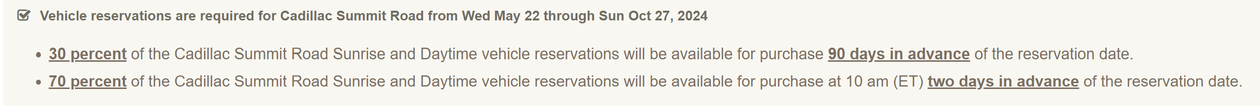 February 17, 2024Vehicle reservations will be required the coming summer for Cadillac Summit Road in Acadia National Park. See more info here: