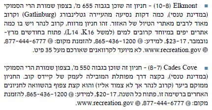 ♦ שיט אבובים (Tubing) בעיירה טאונסנד (Townsend) אשר במדינת טנסי, ראו מידע כאן.