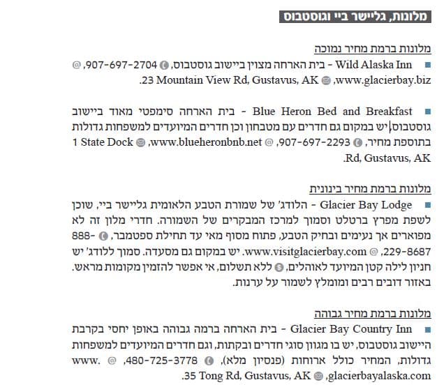 רשימת מלונות, לקוח מהספר אלסקה מסלולים: