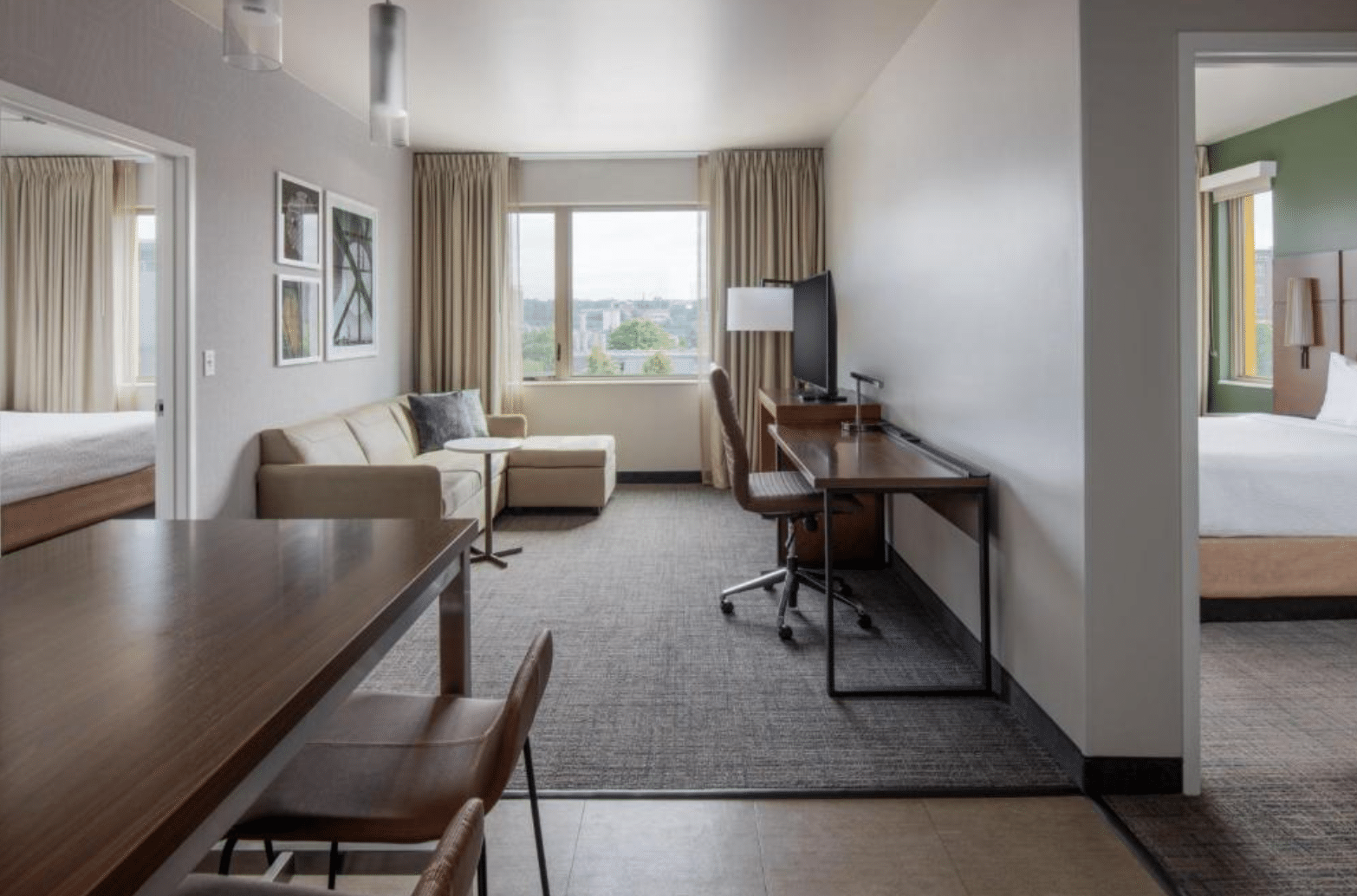 Residence Inn by Marriott Portland Downtown/Pearl District – מלון זה מרוחק במעט ממרכז העיר בהשוואה לרוב המלונות המפורטים בעמוד זה (אך עדיין שוכן במרחק הליכה ממרכז העיר), יתרונו הגדול הוא שיש בו סוויטות עם מטבחון וכן חדרים המתאימים למשפחות גדולות
