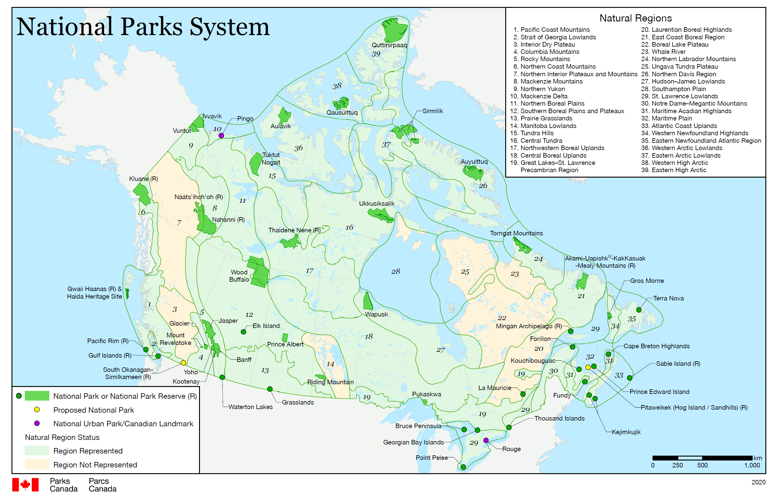 ראו מפה של מיקום כל הפארקים הלאומיים של קנדה: