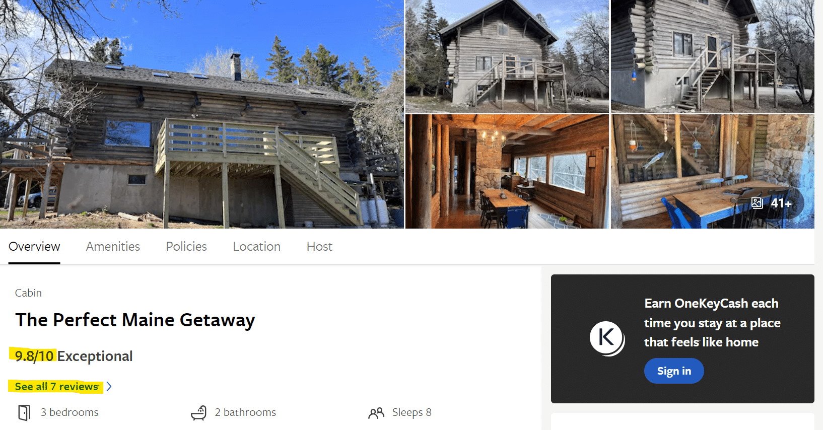 לפי המיקום שבמפה הנכס נראה קרוב לקו המים, אבל בתמונות של הנכס לא רואים שום קרבה לים (ובדרך כלל כאשר נכנס שוכן באתר טבע יפה, או כאשר מדובר על דירה בעיר עם נוף מטמטם, זה יודגש ולא יוצנע. יש לציין שבתיאור הנכס בדרך כלל לא תוכלו למצוא את כתובותו, רק מיקום כללי, וזה כמובן לא מספיק כדי לדעת האם הוא שוכן קו ראשון למים למשל, אם רוצים לקבל מידע מדוייק אפשר לשלוח מייל לבעל הבית או למי שמנהל את הנכס ולשאול). כמו כן התמונות לא מאוד מחמיאות באופן כללי. הביקורות לעומת זאת מצוינות – ציון של 9.8, וגם התוכן של הביקורות טוב. אממה – לנכס הזה יש רק 7 ביקורות, ולכן אי אפשר בעצם להתייחס לציון הזה ברצינות. מהסיבה הזו, אם רוצים לפלטר, אין ממש טעם לפלטר את תוצאות החיפוש על פי Guest rating (מסומן בצהוב למטה). עדיף לפלטר על פי Number of reviews (מסומן בירוק למטה) ואז לבחור את הנכסים שיש להם את מספר הביקורות הגבוה ביותר, שמדורגים הכי טוב (אגב, לפעמים נכנסים למערכת בתים חדשים שאין להם בכלל ביקורות. הבתים הללו הם לעתים קרובות זולים יותר, עם זמינות גבוהה יותר, ולא בהכרח בשל העבודה שהם פחות טובים אלא בגלל שהם חדשים ועם מעט ביקורות, ולכן אנשים חוששים להזמין אותם).