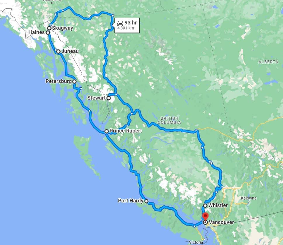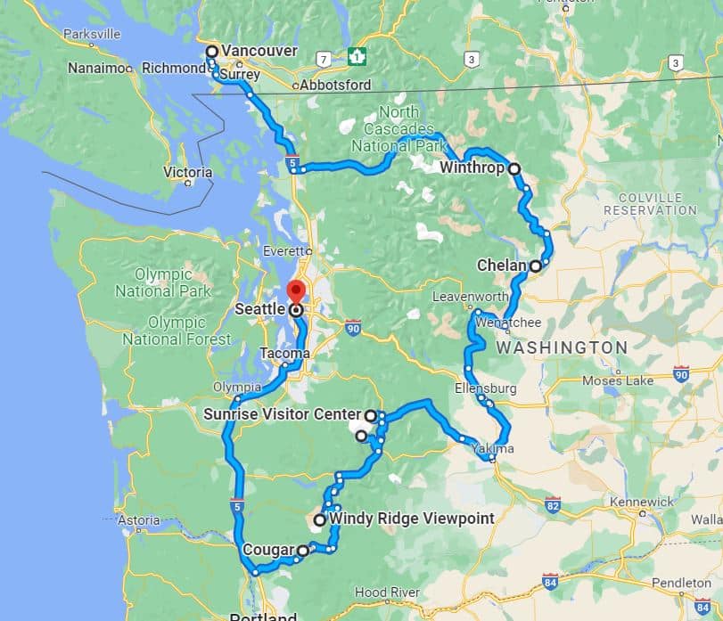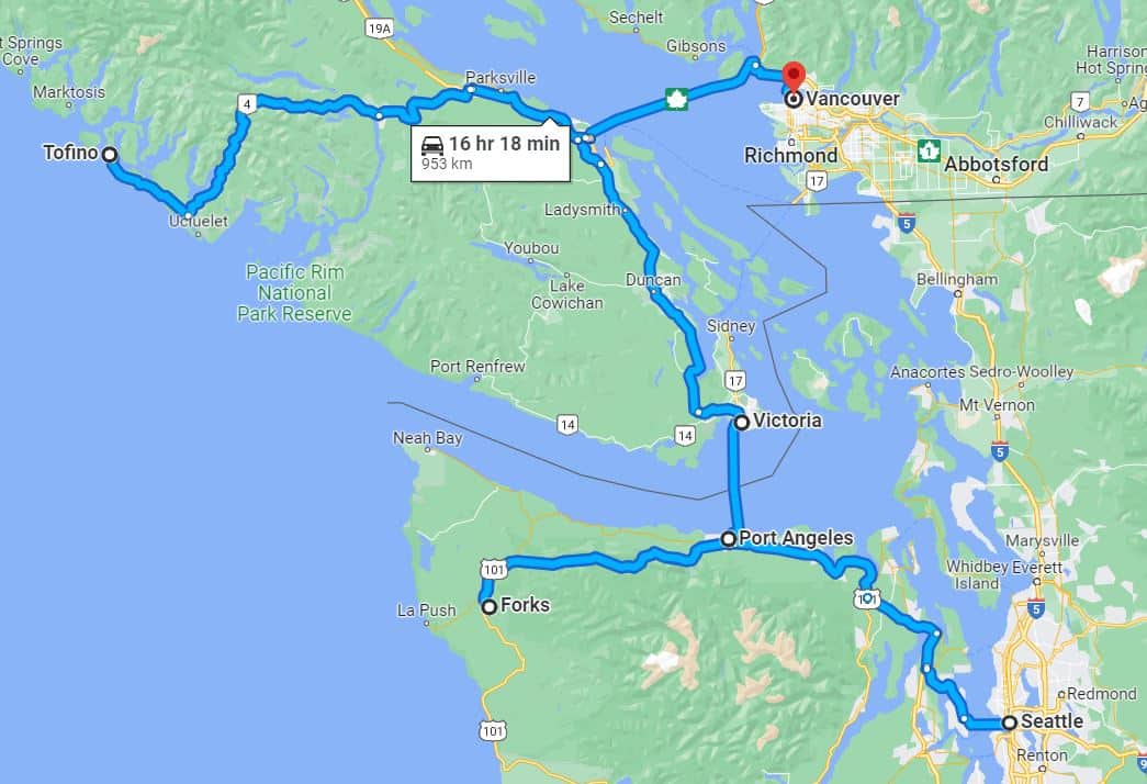 לינק למפת המסלול הירוק חלק א' (מוונקובר לסיאטל): https://goo.gl/maps/oDqtGf2q73DzgkfY8