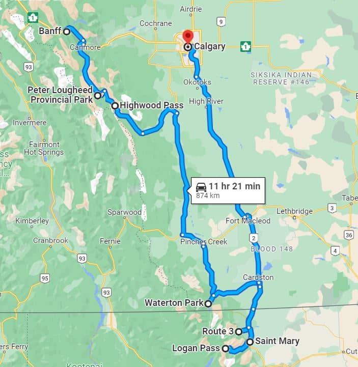לינק למפת המסלול הסגול חלק ב' (מבאנף לשמורות ווטרטון וגליישר וחזרה לקלגרי): https://goo.gl/maps/A5bAghwoR5m9siQU6